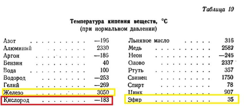 При комнатной температуре 20 градусов железо - твердое тело, кислород - газ, эфир - жидкость. Какое из этих веществ должно обоадать самой низкой температурой кипения?