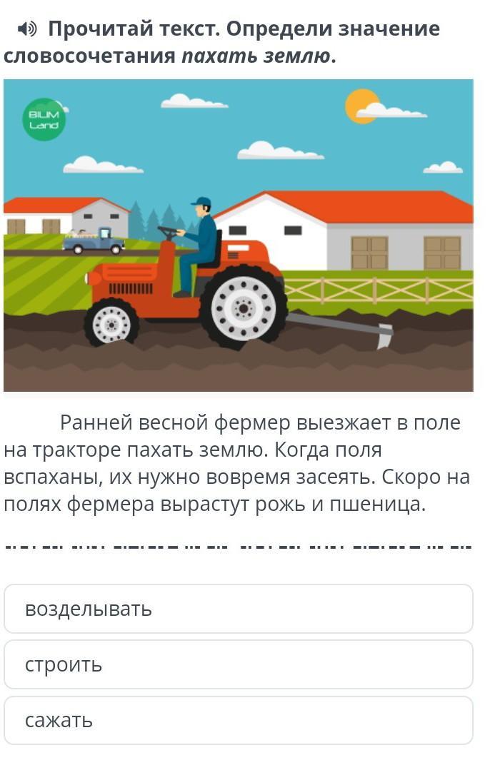 на тракторе пахать землю. Когда поля