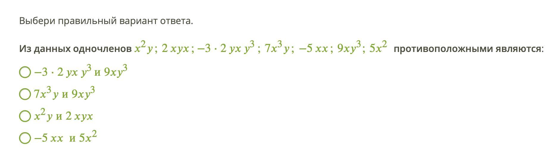 Выбери правильный вариант ответа. Из данных одночленов 2;2;−3⋅23;73;−5;93;52 противоположными являются: