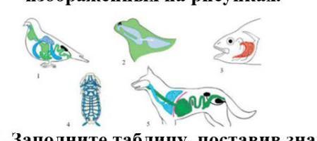 1. По рисункам определите типы дыхания (трахеи, жабры, легкие, кожа) животных и сравните органы дыхания беспозвоночных и позвоночных. Назовите животных, изображенных на рисунках