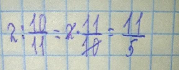 2: 10/11= 2/1 * 11/10= 11/5=2 1/5