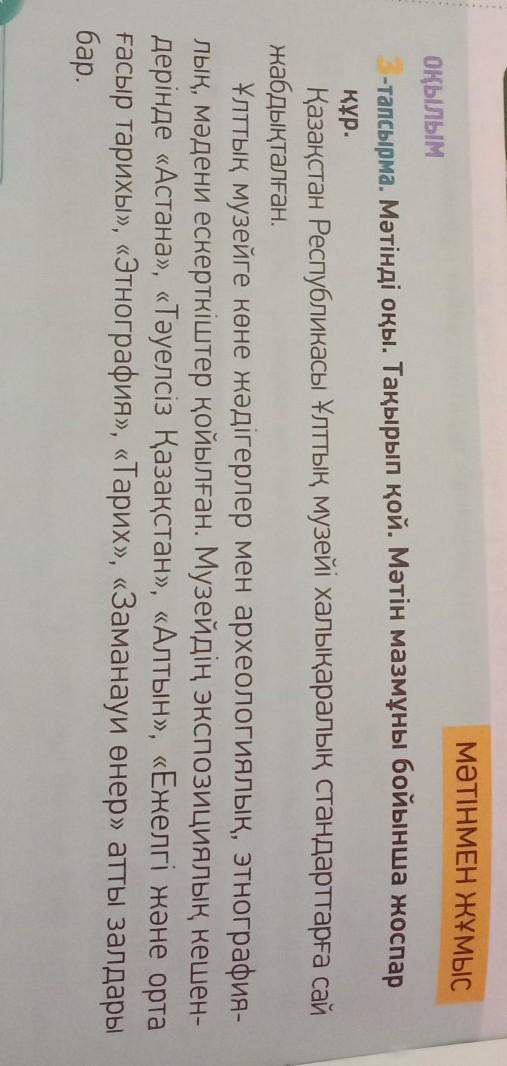 2-тапсырма. 116-бет, 3-тапсырма, мәтінді оқы, мәтінге ат қой және жоспар құр