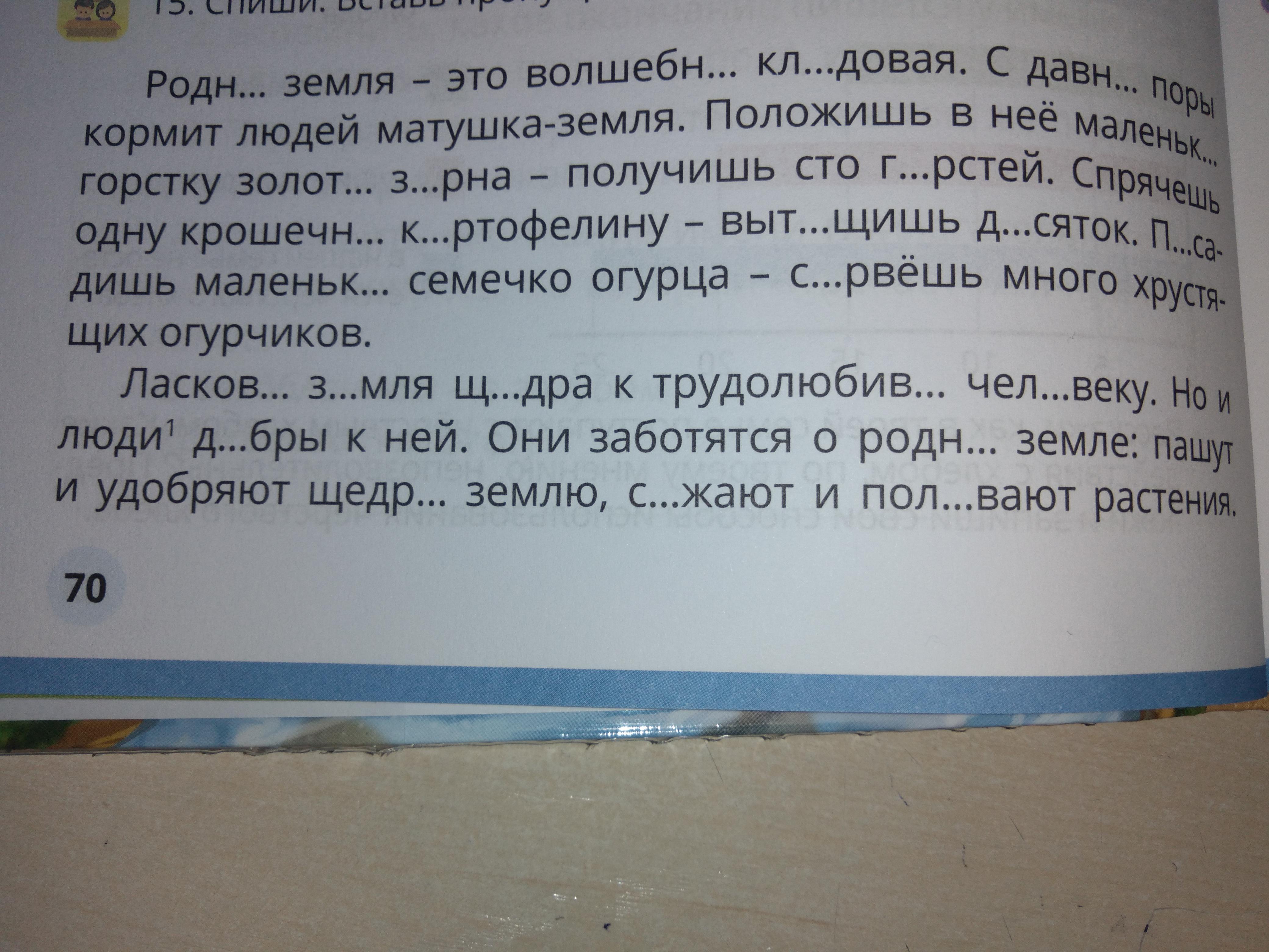 Ласковая ( ж.р., ед.ч., им.п. ) земля щедра ( ж.р., ед.ч.) к трудолюбивому( дат.п., ед.ч., м. р. ) человеку. Но и люди добры ( ж.р., мн.ч. ) к ней. Они заботятся о родной ( п.п., ед., ч., ж.р. ) земле: пашут и удобряют щедро землю, сажают и поливают растения.