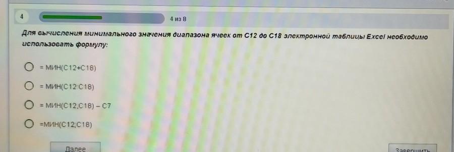 для вычисления линимального значения диапазона ячеек от с12 до с18 электронной таблицы Excel необходимо