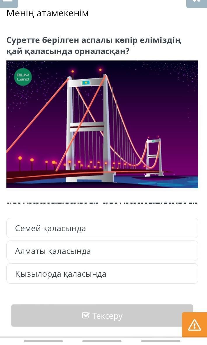 Суретте берілген аспалы көпір еліміздің қай қаласында орналасқан.