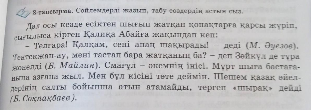 3 тапсырма.сойлемдерди жазып,табу создердин астын сыз .пж помагите....буду очень благодарна...✋✋✋✋✋
