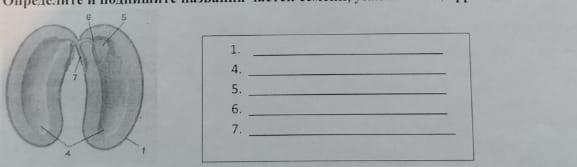 Рассмотрите рисунок на котором схематически изображена разрезанная вдоль семя фасоли определите и подпишите названия частей семени указанных цифрами помогите пожалуйста