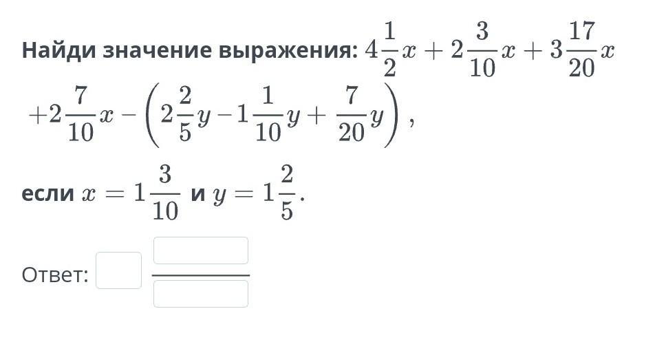 Найди значение выражения: при х = 1 3/10; у= 1 2/5.