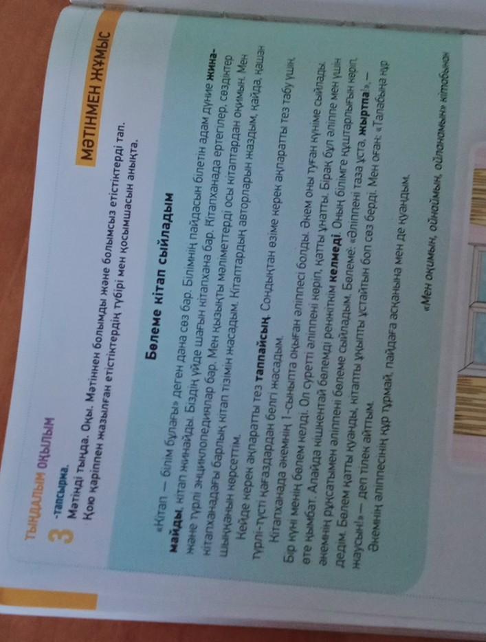 116-бет,3-Мәтінді оқы.Мәтіннен болымды және болымсыз етістіктерді тап.Қою әріппен жазылған етістіктердің түбірі мен қосымшасын анықта.