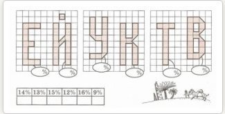 Буква Е = 12 клеток ⇒ 12/100 = 12%