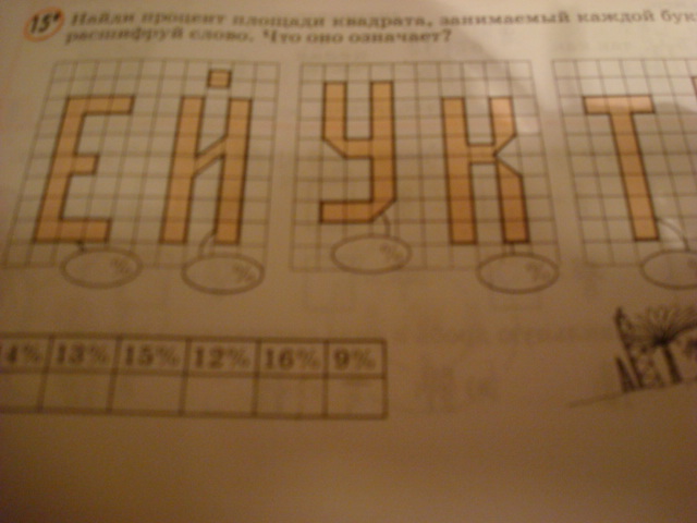 Найди процент площади квадрата,занимаемой каждой буквой,и рашифруй слово.Что оно означает?