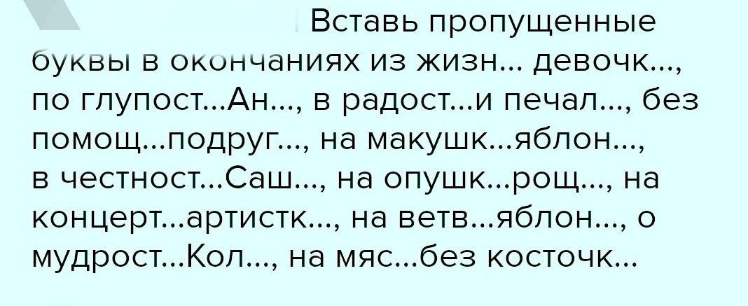 Из жизнИ девочкИ, по глупости АнИ, в радостИ и печалИ, без помощИ подругИ, на макушкЕ яблонИ, в честностИ СашИ, на опушкЕ рощИ, на концертЕ артисткИ, на ветвИ яблонИ, о мудростИ КолИ, на мясЕ без косточкИ.