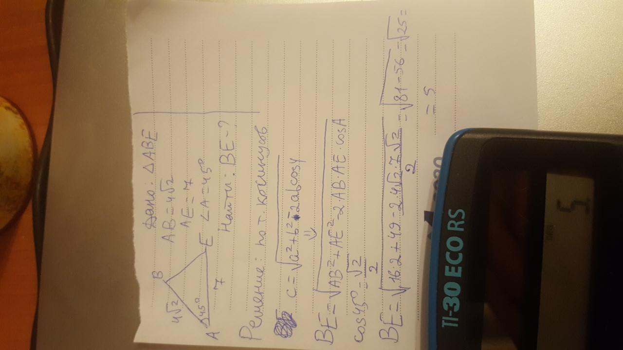 На фото (использовалась теорема косинусов)