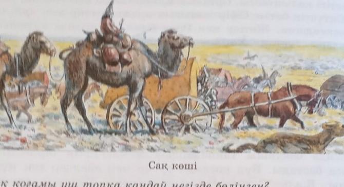 Халықтар өздерінің малдарымен,кигіз үйлерімен,қоныстанып барад.Олар неше түрлі саймандар,ағаштар алды.Менің ойымша олар басқа жаққа көшіп барады.Адамдар түйенің үстінде зат тасып барадд.