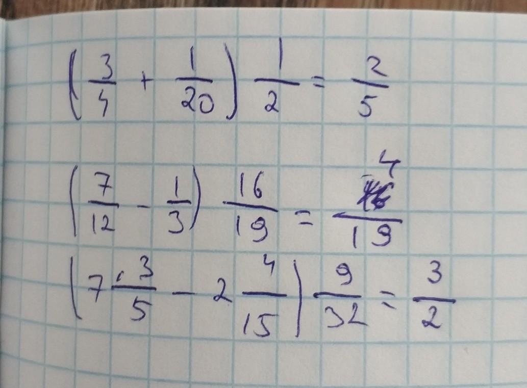 584.Выполните действия : 1) (3/4+1/20)*1/2=