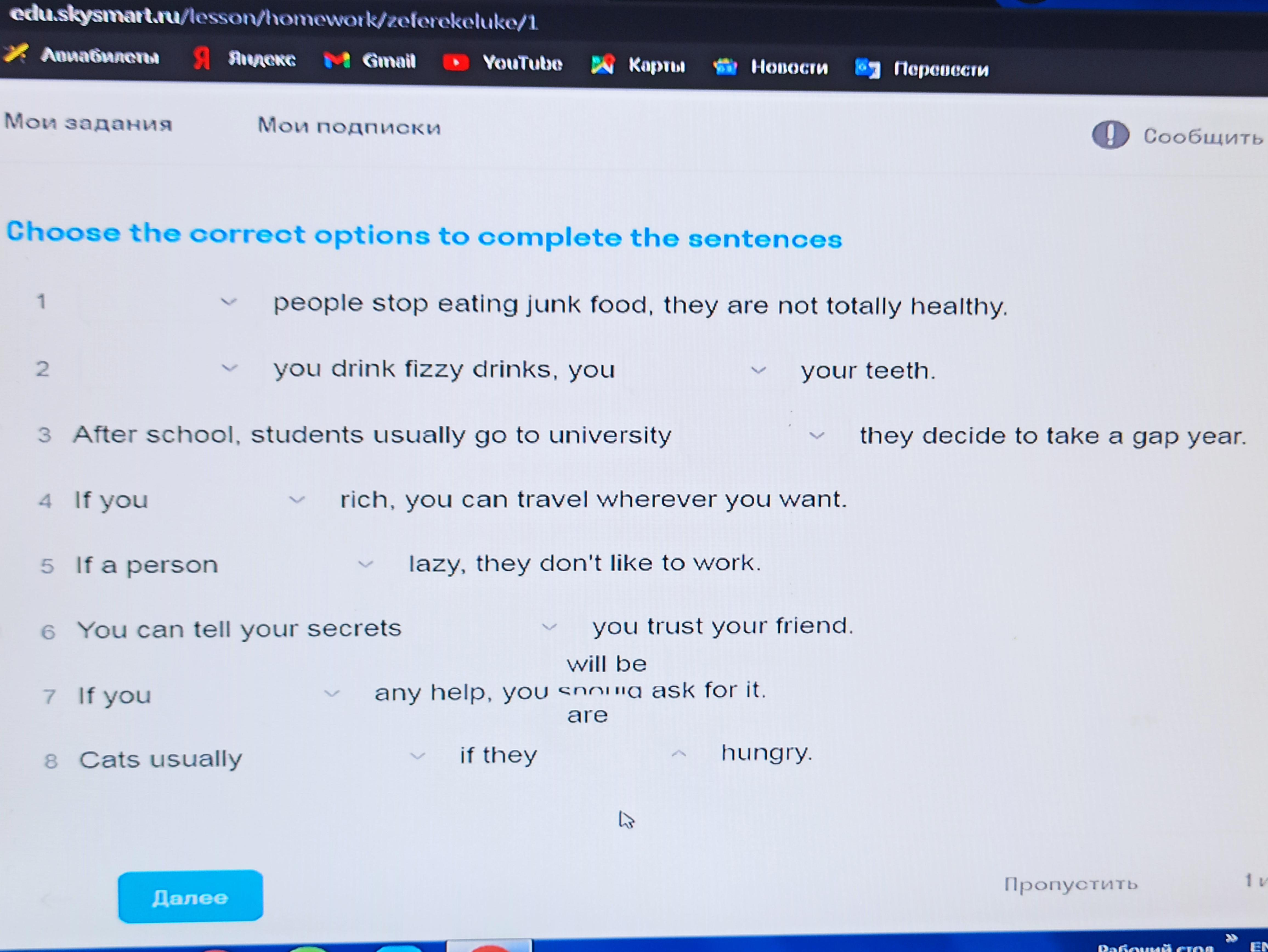Вставить пропуски использовать в 1(if,unless) во 2 (unless when) второй пропус во 2 предложение (harms,harm) в 3 (if unless) в 4 (will be,are) в 5 (will be,is) в 6(if,unless) в 7 (will need, need) в 8(mew, will mew) во втором случае в 8(will be, are)