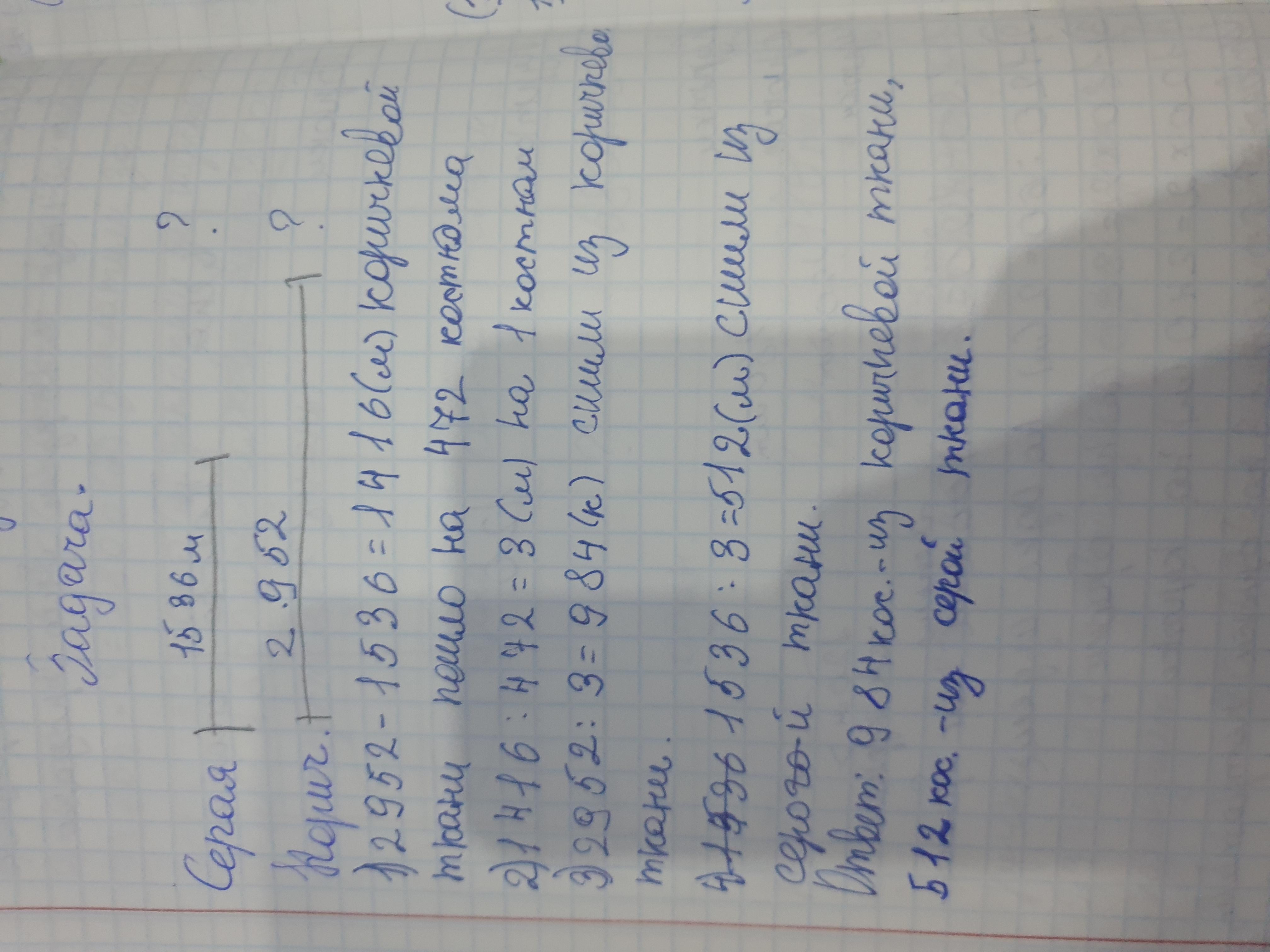 на швейной фабрике сшили костюмы и 1536 МС серой ткани и 2952 м коричневой ткани коричневых костюмов вышла на 472 больше чем серых сколько серых и коричневых костюмов Сделайте пожалуйста условия