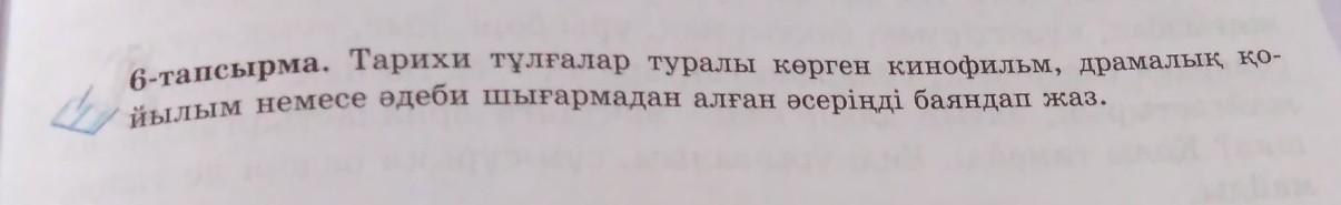6-тапсырма. Тарихи тұлғалар туралы көрген кинофильм, драмалық қо-