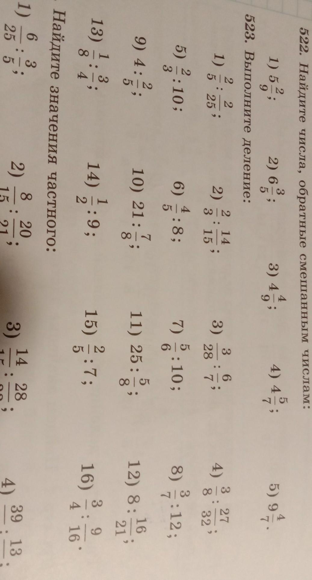 там где дробь разделить на дробь просто в начале первую перепиши после знака равно, а потом поставь знак умножить и переверни, запиши вторую дробь.и потом угадай только незабудь что если можно скоротать скарачивай. А там где число разделить на дробь после знака = перепиши целое число поставь знак умножить переверни ту дробь потом умнож целое число на чисельник(это то число которое сверху а под линией перепеши тоже число которое было внизу. удачи