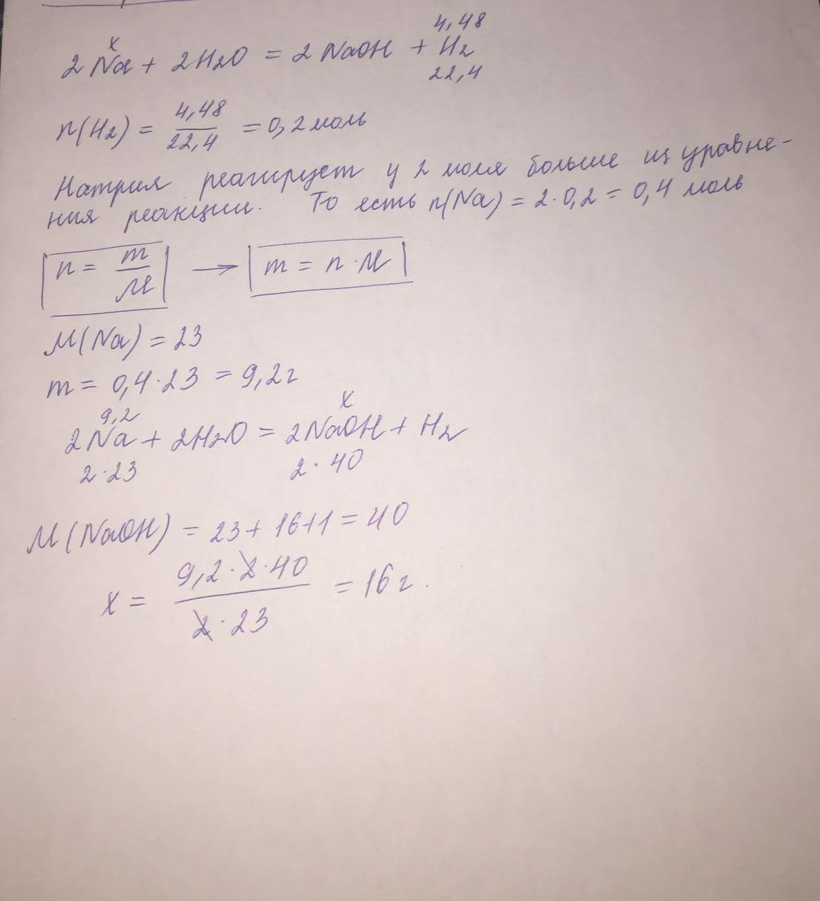 Какая масса натрия прореагировала с водой, если при этом выделилось 4,48л