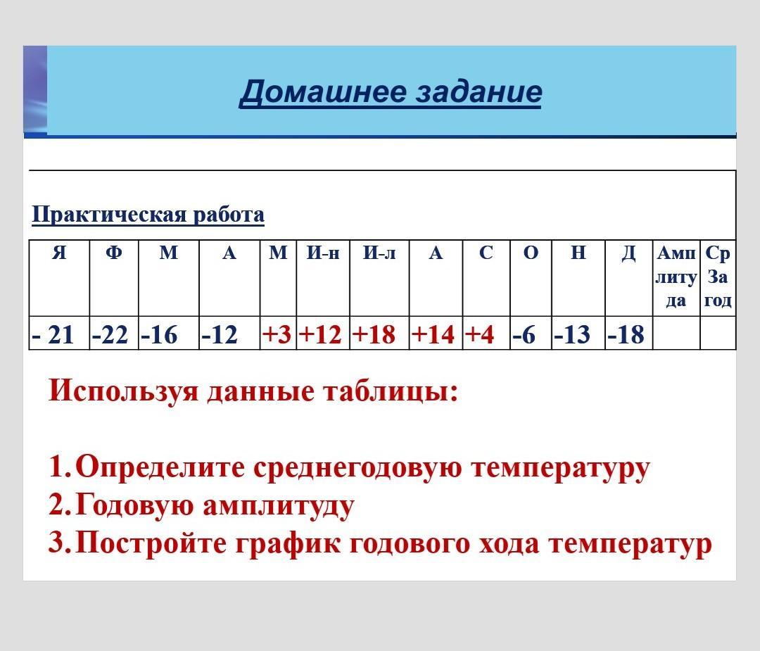 ГЕОГРАФИЯ. 6 КЛАСС. Среднегодовая температура, амплитуда, график годового хода температур.