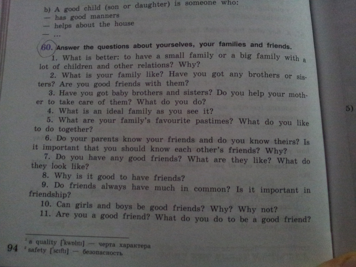 Очень срочно, Помогите пожалуйста составить текст по этим вопросам которые во вложении (у меня нет сестер и братьев)(семья маленькая: папа мама и я) Пожалуйста очень срочно.