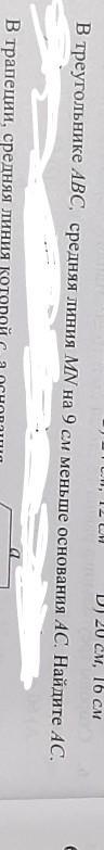 пусть MN=x, т.к. средняя линия в 2 раза меньше основания, получаем АС=2х.