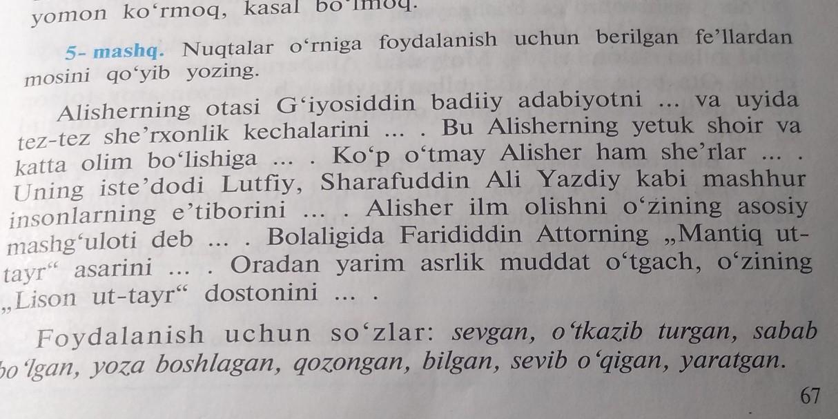 Nuqtalar foydalanish uchun mo'ljallangan fe'llardan mosini qo'yib yozing