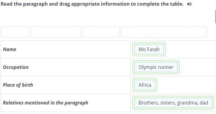 Faster, higher, stronger. Read the paragraph and drag appropriate information to complete the table. Name Occupation Place of birth Relatives mentioned in the paragraph