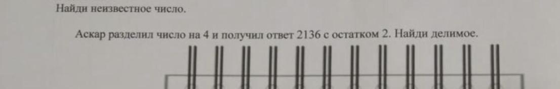 Аскар разделил число на 4 и получил ответ 2136 с остатком 2. Найди делимое