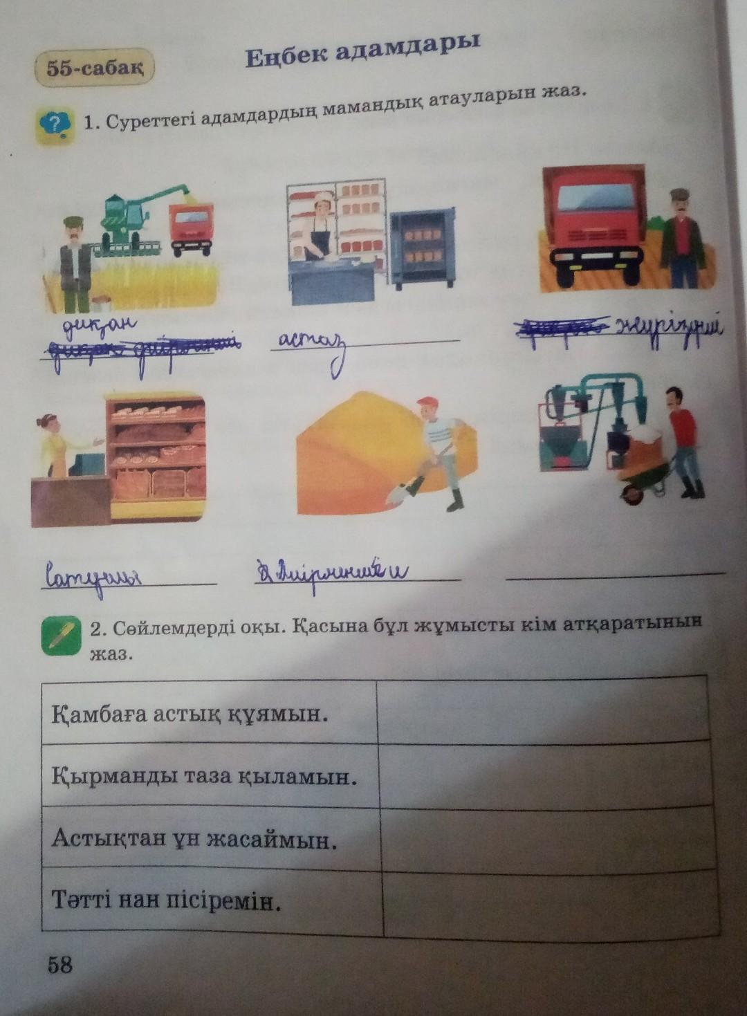 1. суреттегі адамдардың мамандық атауларын жаз.