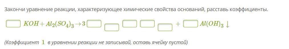 Ответ: 6KOH + Al2(SO4)3 = 3K2SO4 + 2Al(OH)3