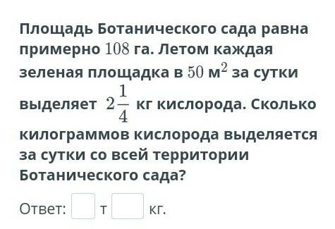 2) 2,25 · 21 600 = 48 600 кг кислорода выделяется за сутки на территории Ботанического сада