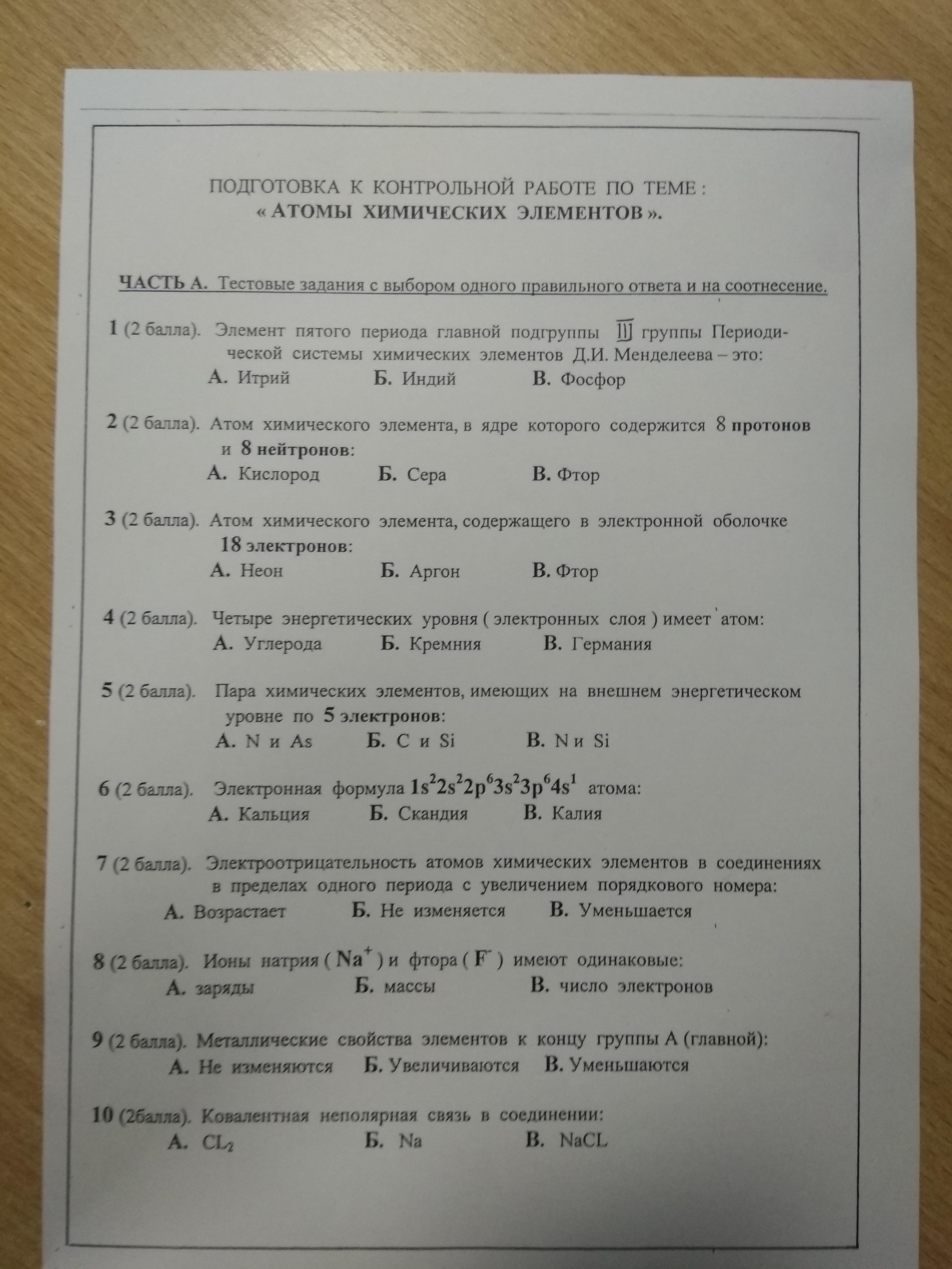 3 (2 балла). Атом химического элемента, содержащего в электронной оболочке