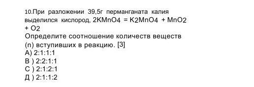 10.При  разложении  39,5г  перманганата  калия  выделился  кислород, 2KMnO4 = K2MnO4 + MnO2 + O2