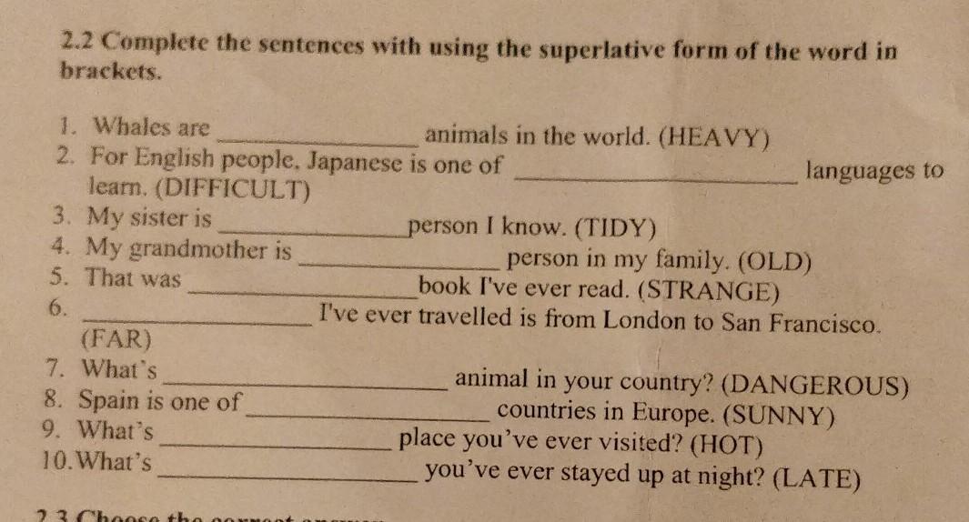 ПОМАГИТЕ ПЖЖЖЖ 2.2 Complete the sentences with using the superlative form of the word in