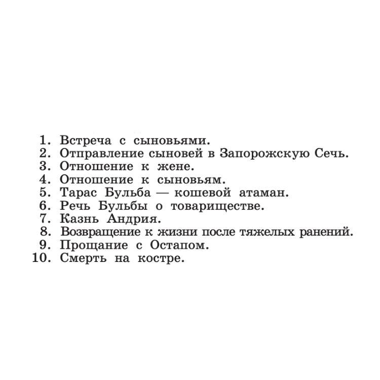 Тарас Бульба, опытный, закалённый в ратных боях полковник, всей душой болеющий за родину и посвятивший жизнь Запорожской Сечи, в своих мечтах видит сыновей смелыми воинами. Он готовит их к бранному подвигу, считая, что они, как он сам и его товарищи, должны биться за отечество.