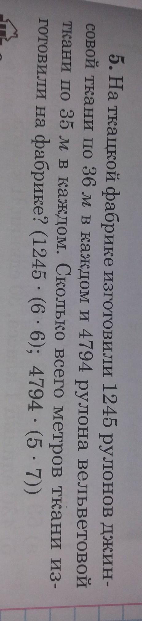 2)4794*35=167 790 (м.)-вильветовая ткань (4794*5*7)