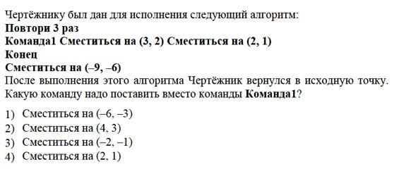 Т.к. после выполнения Чертежник оказался в исходной точке, то его перемещения равны 0.