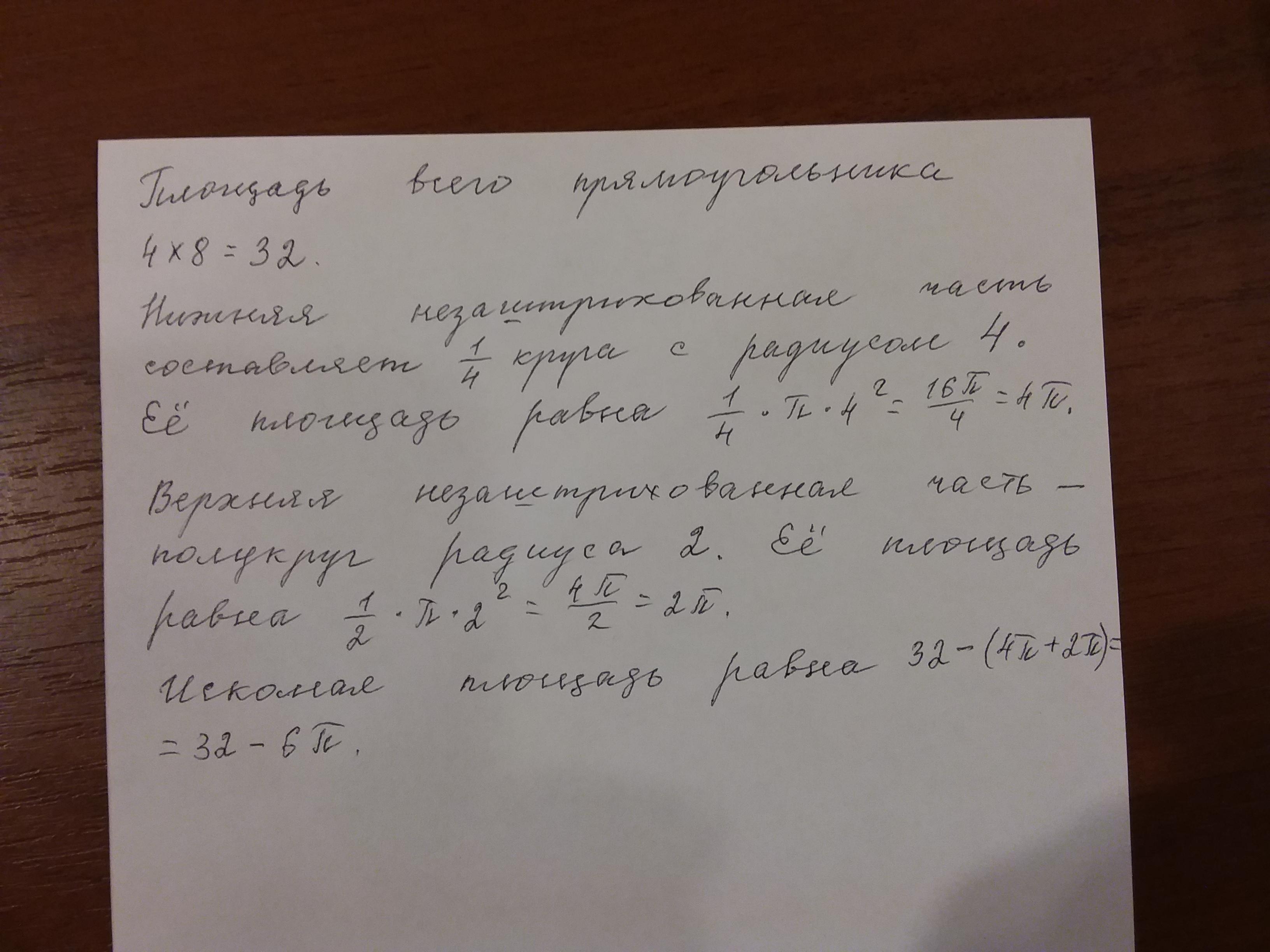 Найдите площадь заштрихованной фигуры, изображенной на рисунке.