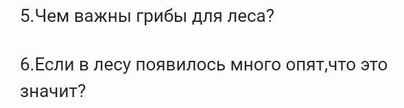 5) Грибы играют важную роль в процессе разложения и минерализации отмирающей древесной массы. Не будь грибов, леса задыхались бы от того количества органических остатков, которые нагромождаются в процессе их жизнедеятельности.