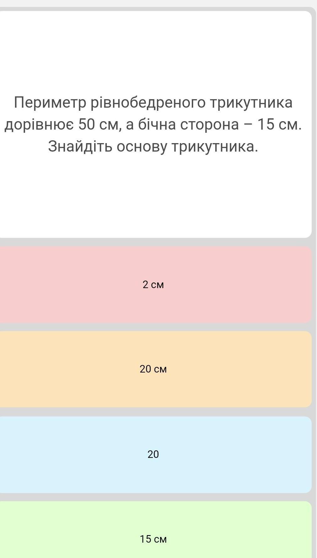 50-15*2=50-30=20 см основание.