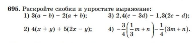 1) 3(a - b) - 2(a + b) = 3a - 3b - 2a - 2b = a - 5b