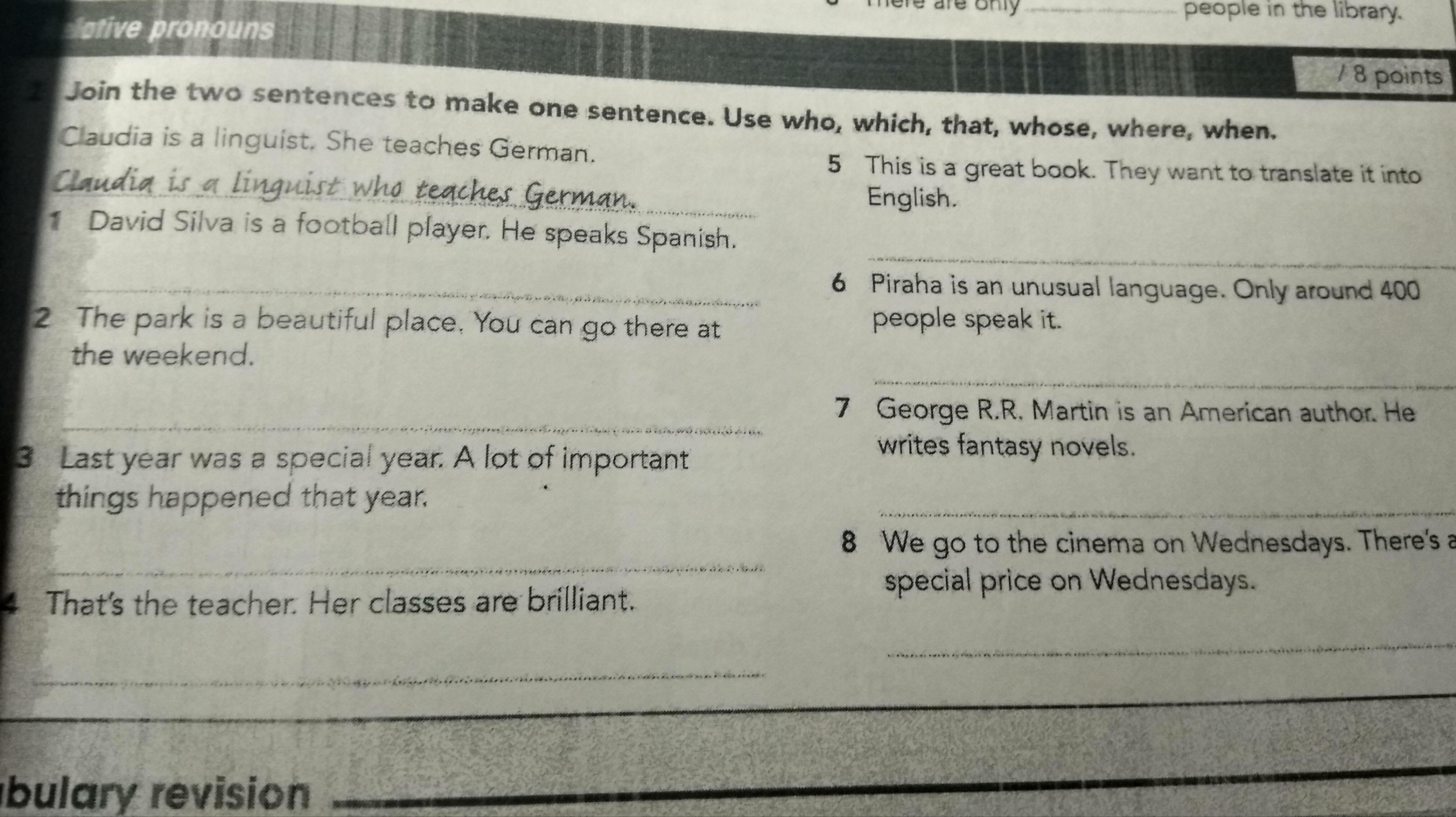 Join the two sentences to make one sentence. Use who, which, that, whose, where, when. помогите пожалуйста очень срочно