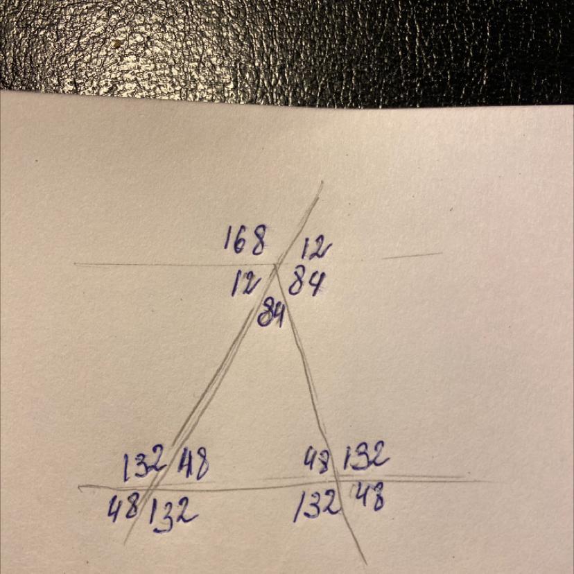 Сумма всех углов 180 градусов 48+48=96 180-96=84