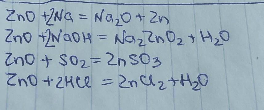 С какими из перечисленных веществ будет взаимодействовать оксид цинка: натрий, оксид натрия, гидроксид натрия, оксид серы(IV), соляная кислота, оксид алюминия?