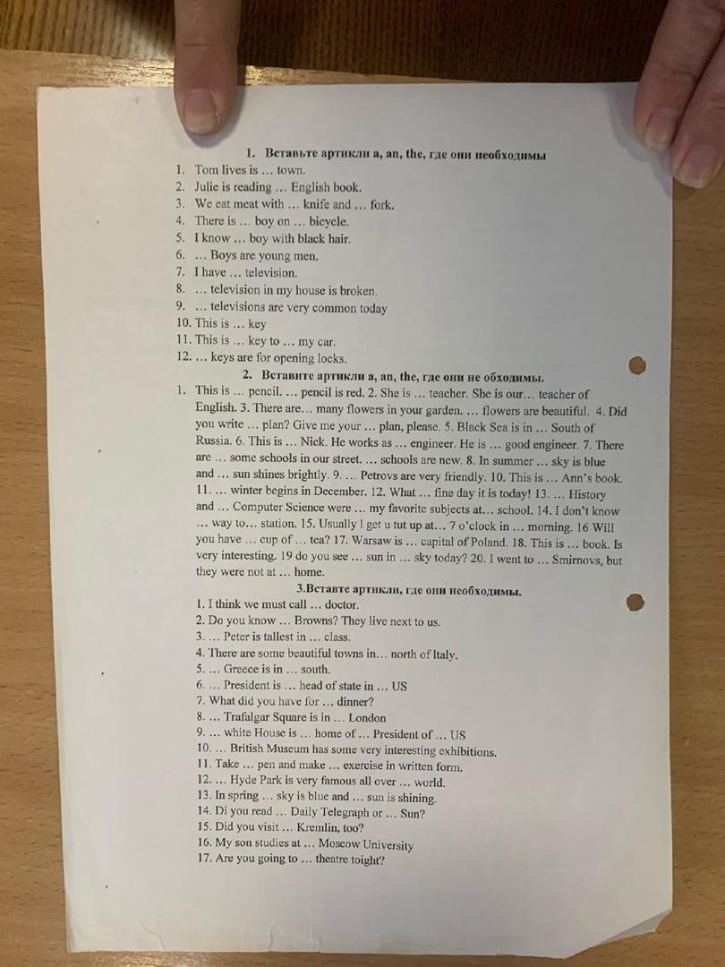 Напишите, пожалуйста, какие артикли нужно вставить в предложения.