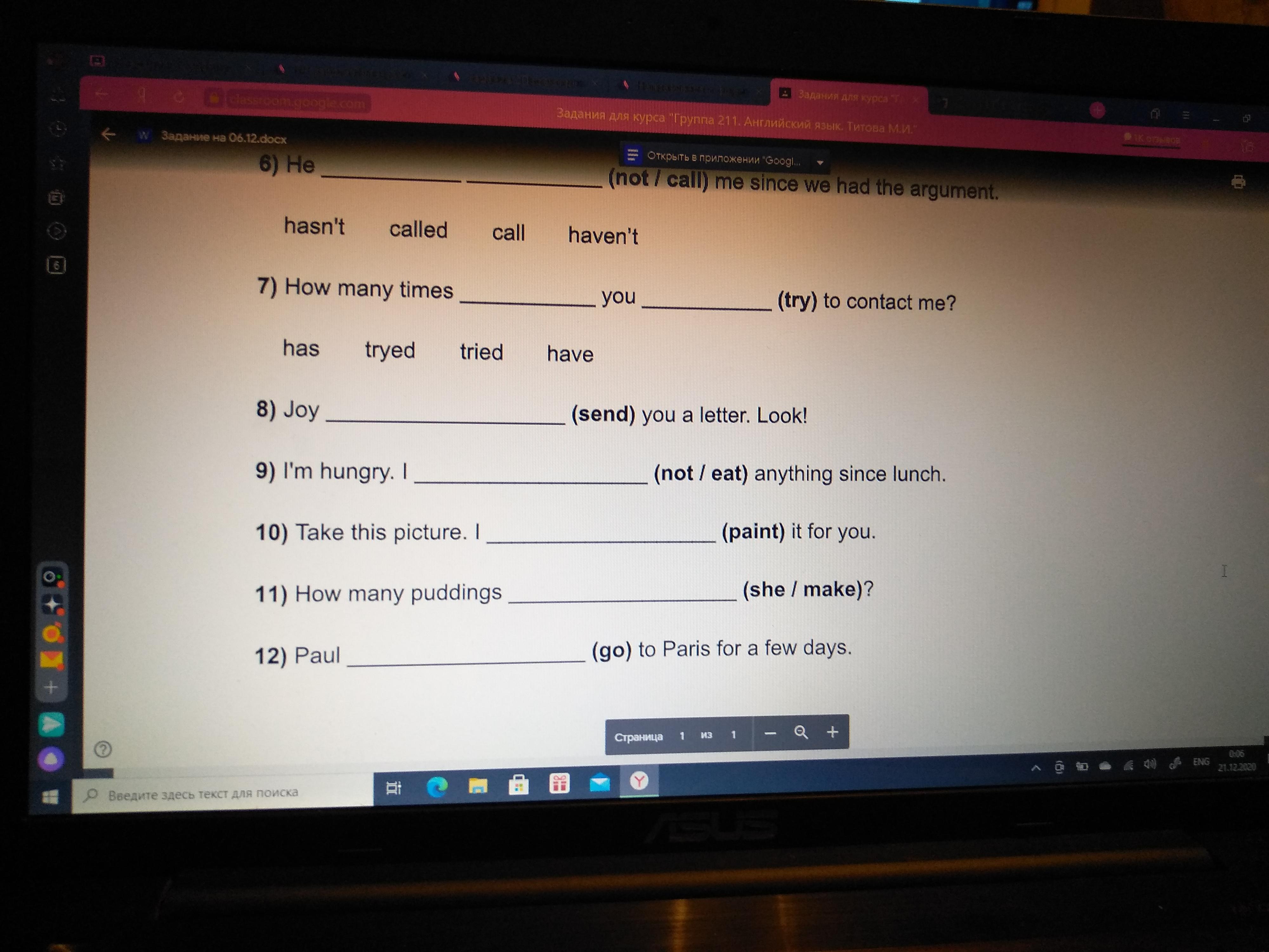 Помогите плиииз с английским!!! Нужно поставить предложения в present perfect!!! SOS