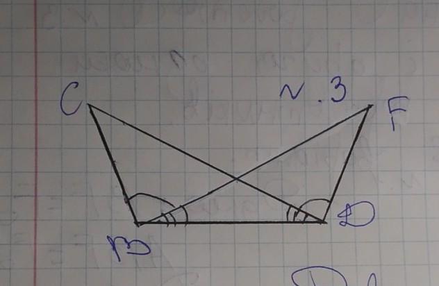 треугольники равны по 1 признаку(2 стороны и угол между ними )