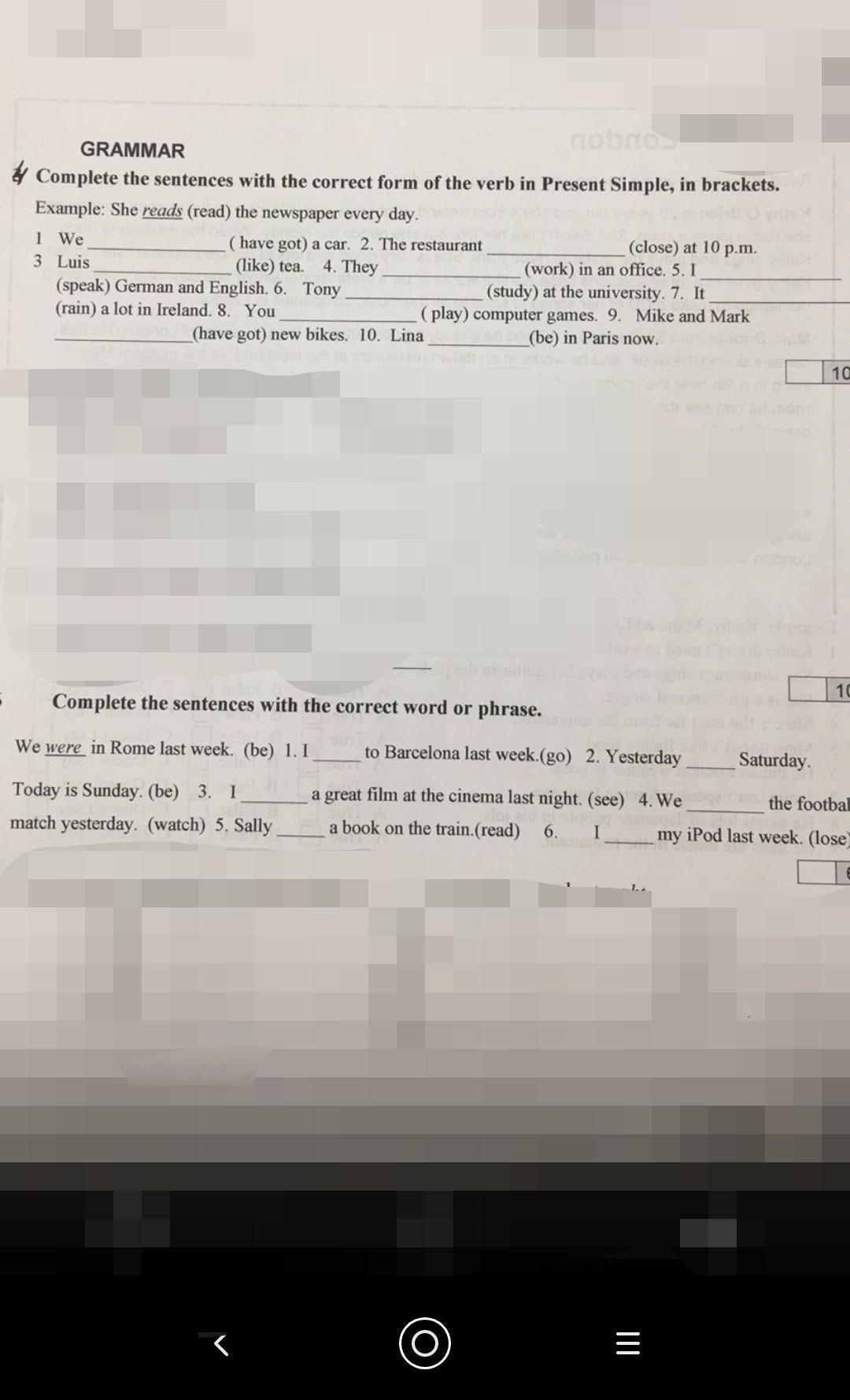 помогите пжжж complete the sentences with the correct word or phrase .we were in rome last week